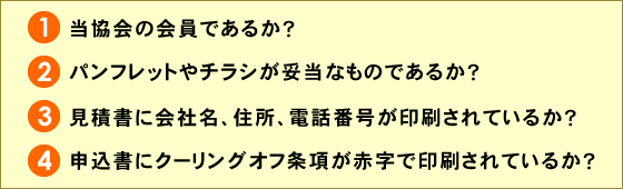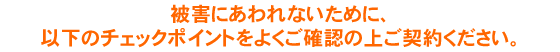 「ご近所でシロアリ駆除をしています。ついでに床下を無料で点検します」と訪問し、あたかも本当に点検したかのように「シロアリがいる。このままにしていたら大変なことになる」と不安をあおるような説明をして、高額なシロアリ駆除・床下換気扇・床下乾燥剤の契約をさせるいわゆる点検商法の悪質業者がいます。